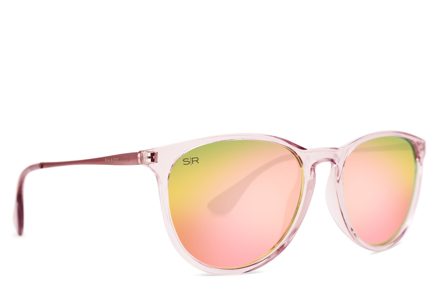 TR-90 Transparent Pink frame featuring brushed rose gold etched metal temples