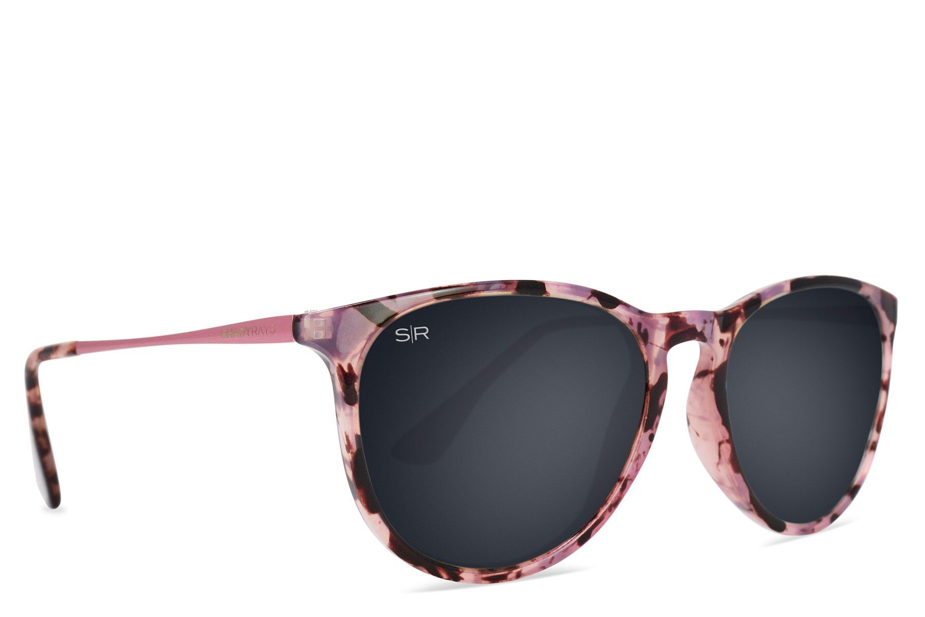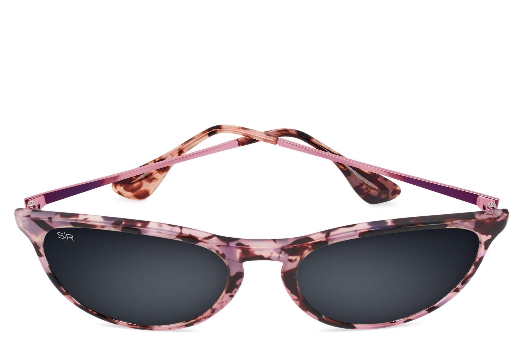 Pink tortoise frame featuring brushed pink metal temples