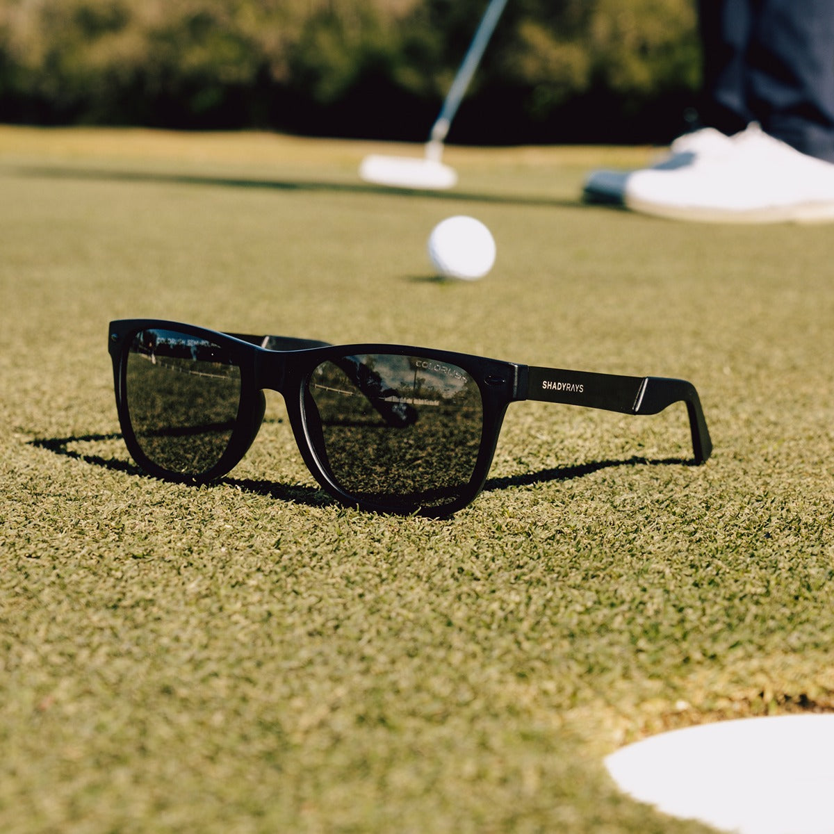 Premium brushed black stainless steel arms with etched Shady Rays logo.