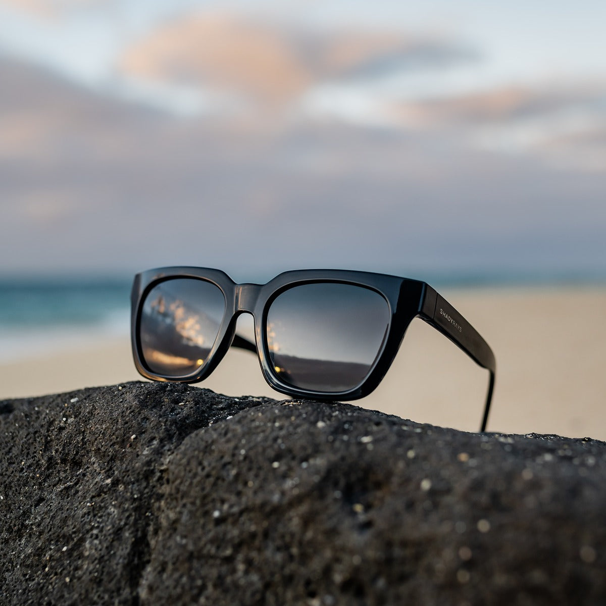 Polarized black non-mirrored lens with grey tint, and shatterproof, anti-scratch lenses