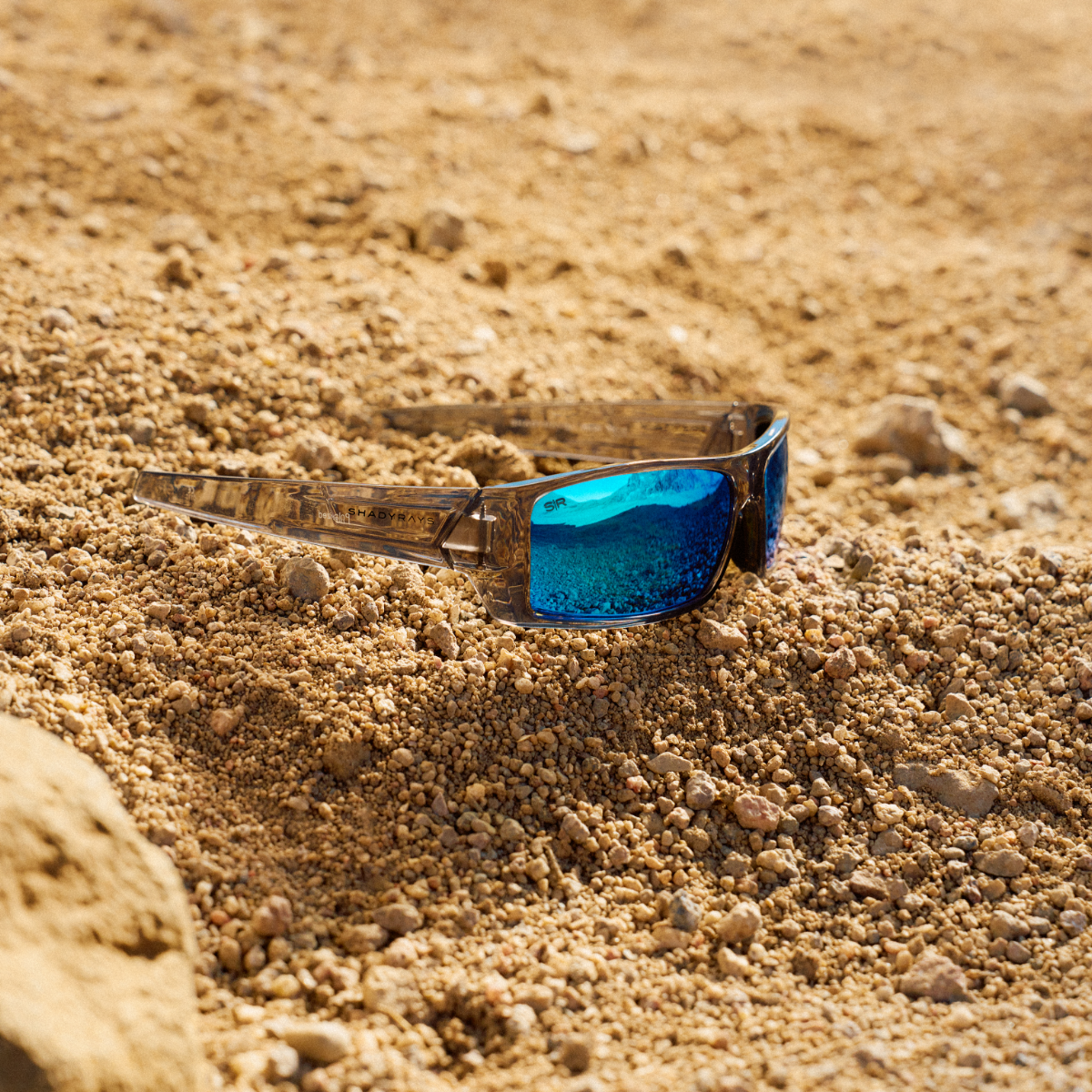 Premium Polarized icy blue mirrored lenses with grey tint: 100% UV protection/ shatter-resistant/ salt water resistant/ hydrophobic coating
