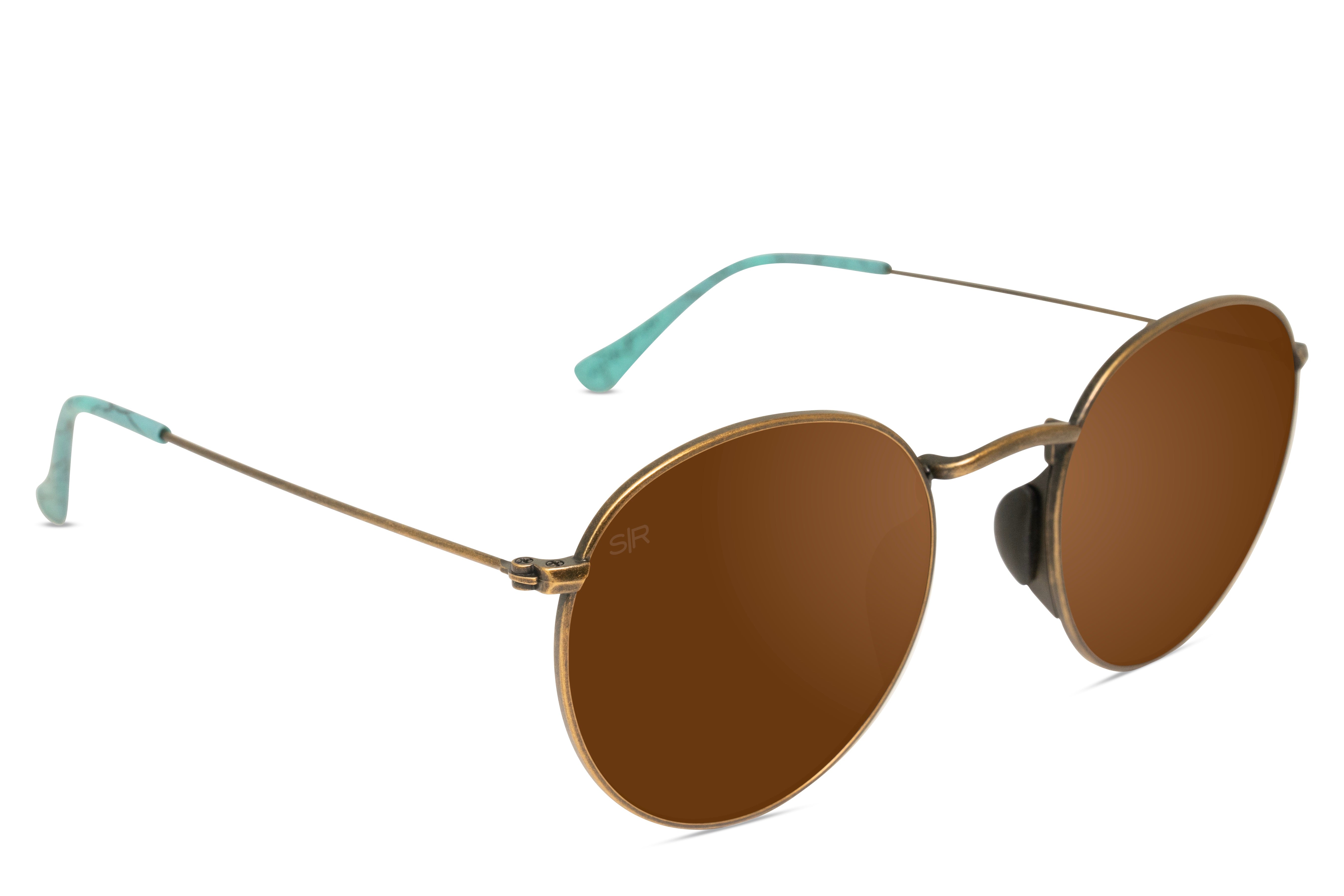 Antique Gold Metal frame with vibrant turquoise temple tips